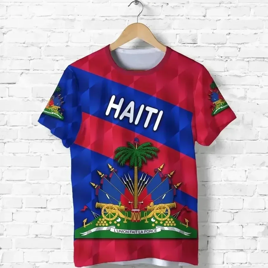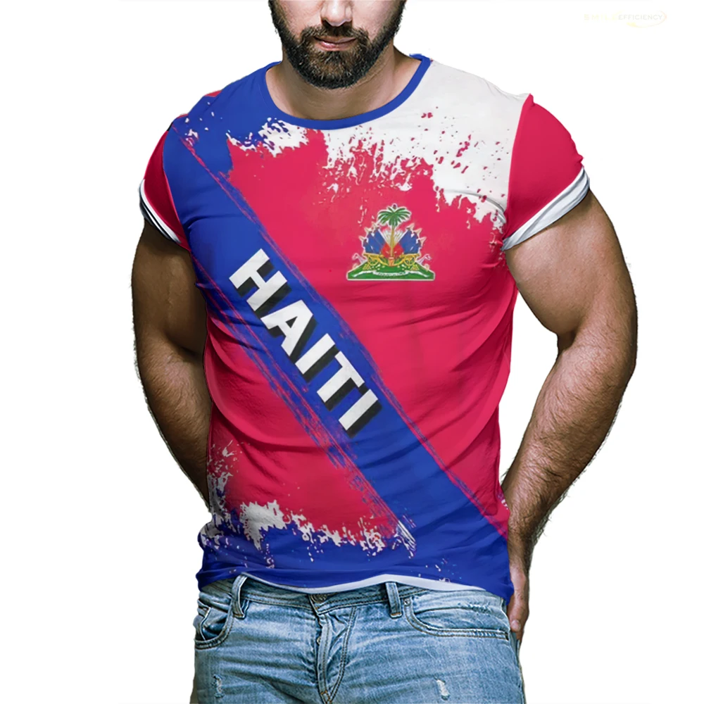 2024 Haiti Island Flag Men Tshirt National Emblem Caribbean Sea Retro Streetwear 3D Funny Casual Short Sleeve Football T-Shirts